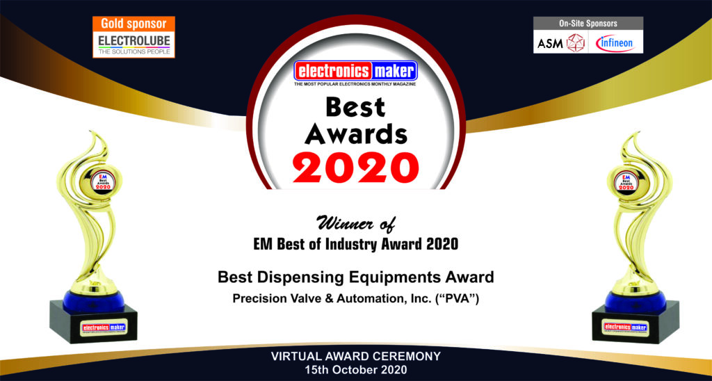Cohoes, NY – October 2020 – PVA, a global supplier of automated dispensing and coating equipment,received a 2020 EM Best of Industry Award in the category of Best Dispensing Equipment for its PREVENT